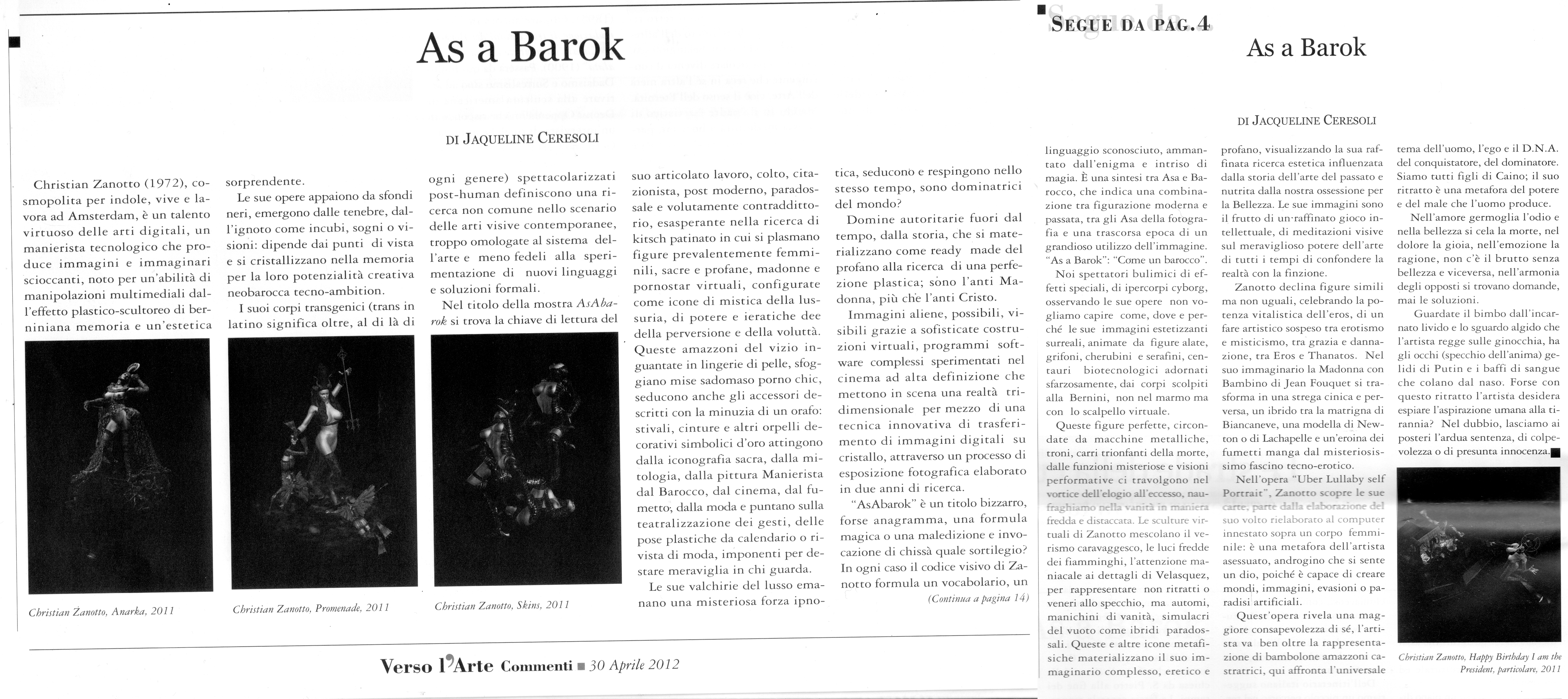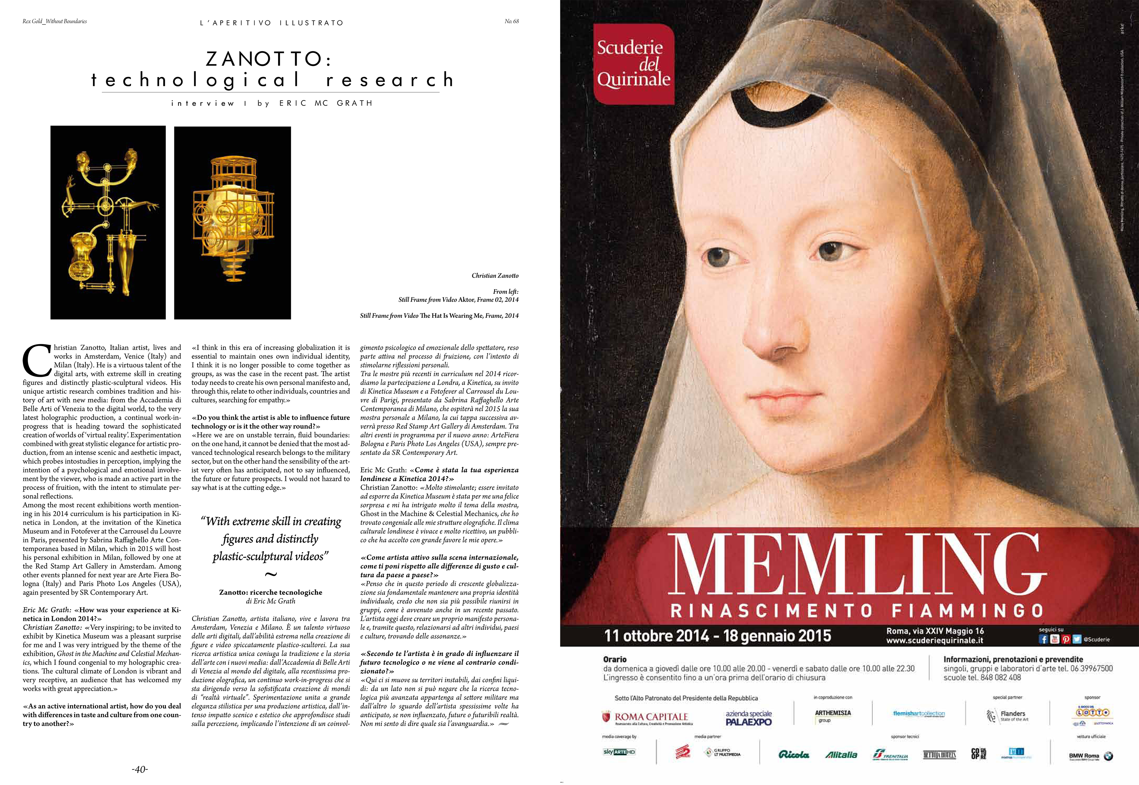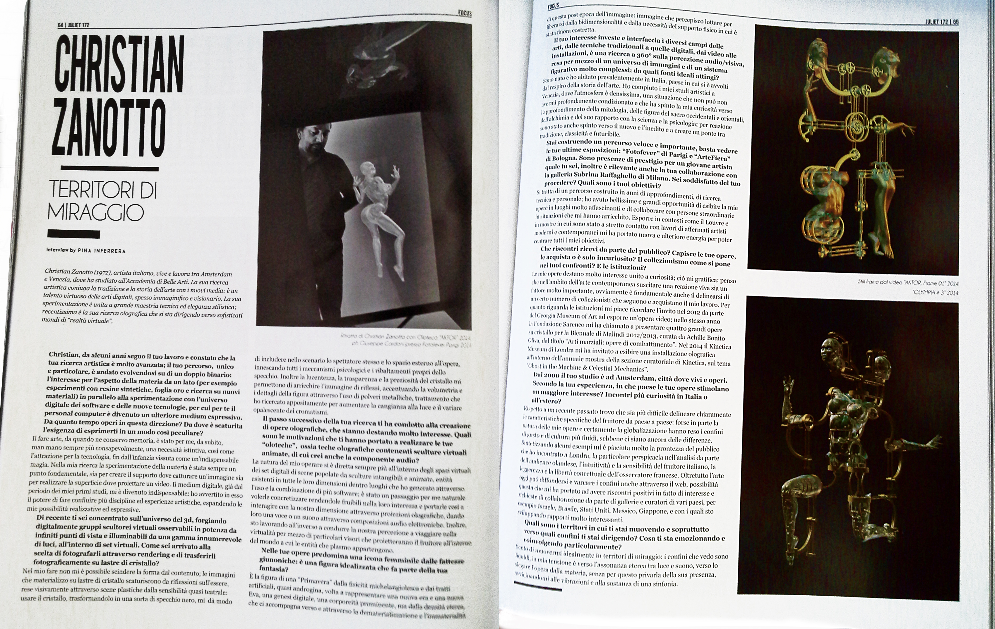 Christian Zanotto: Article on AreaArte - Nr. 24 - Winter 2015 / 2016