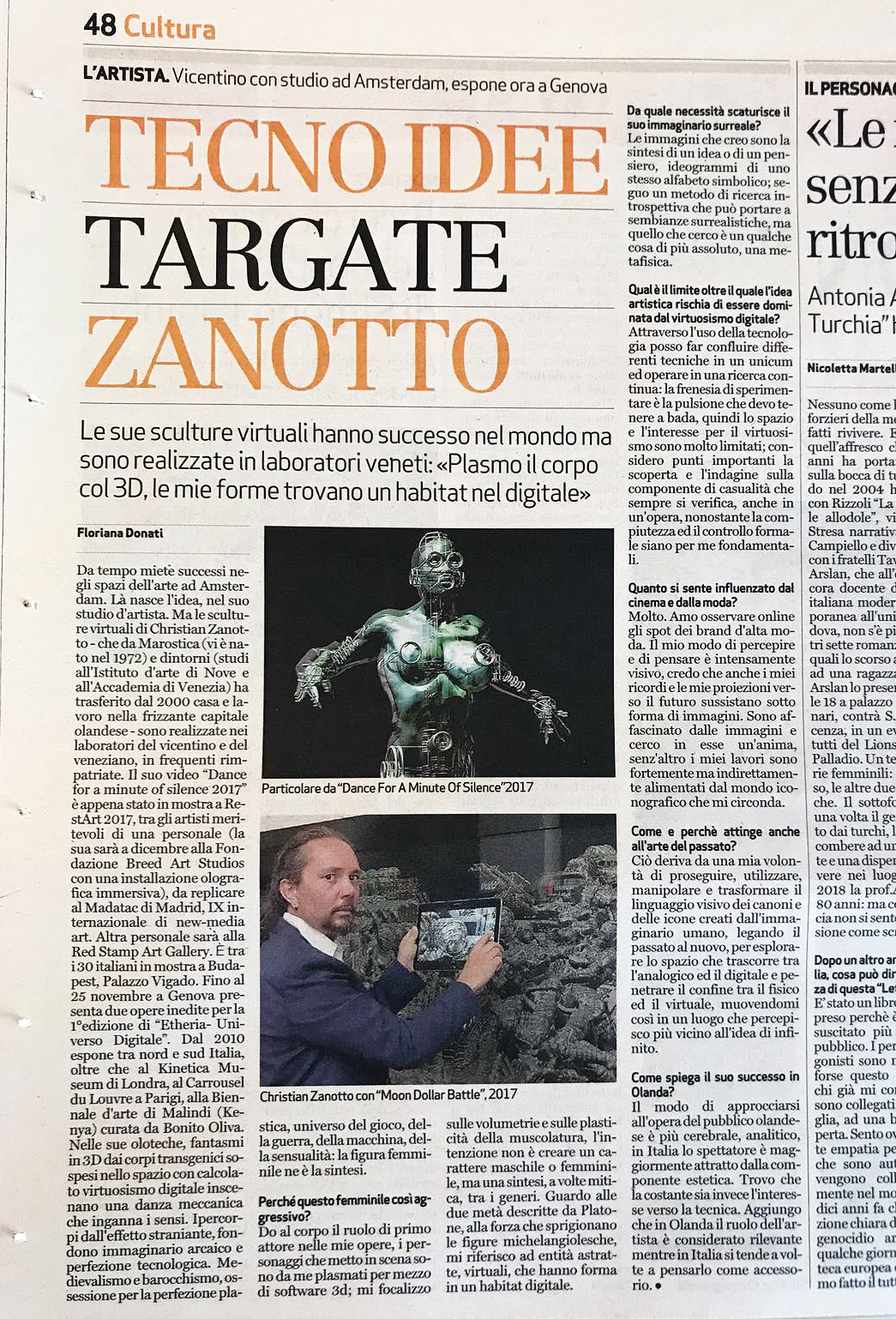 Christian Zanotto: "Tecno Idee targate Zanotto"; article and interview by Floriana Donati on Il Giornale di Vicenza, 23/11/2017